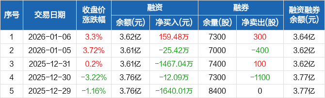 汇成真空:融资净买入159.48万元,融资余额3.62亿元(01-06)