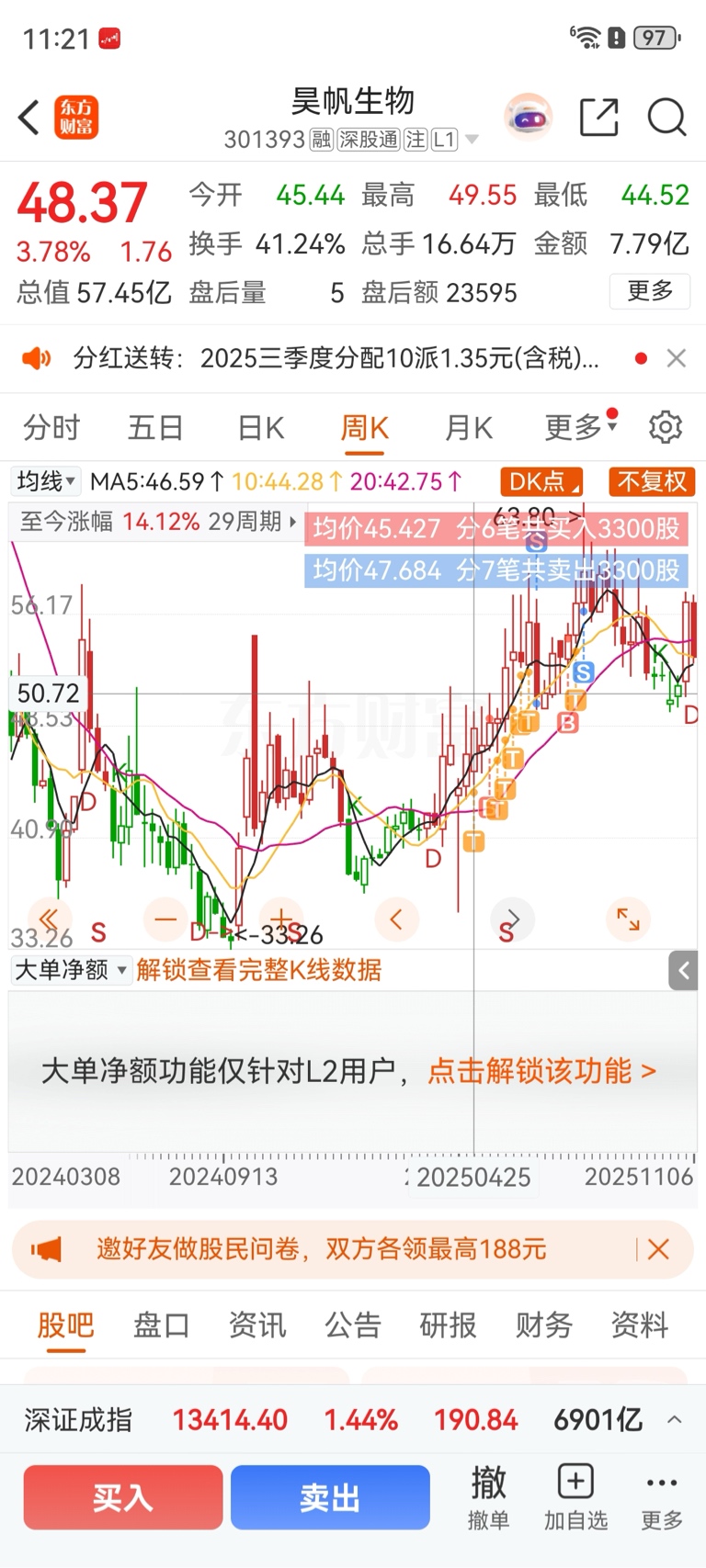 我40多块钱就开始玩儿昊帆生物了,我发我的操作,管你们P事?不喜欢看就拉黑呗,叽
