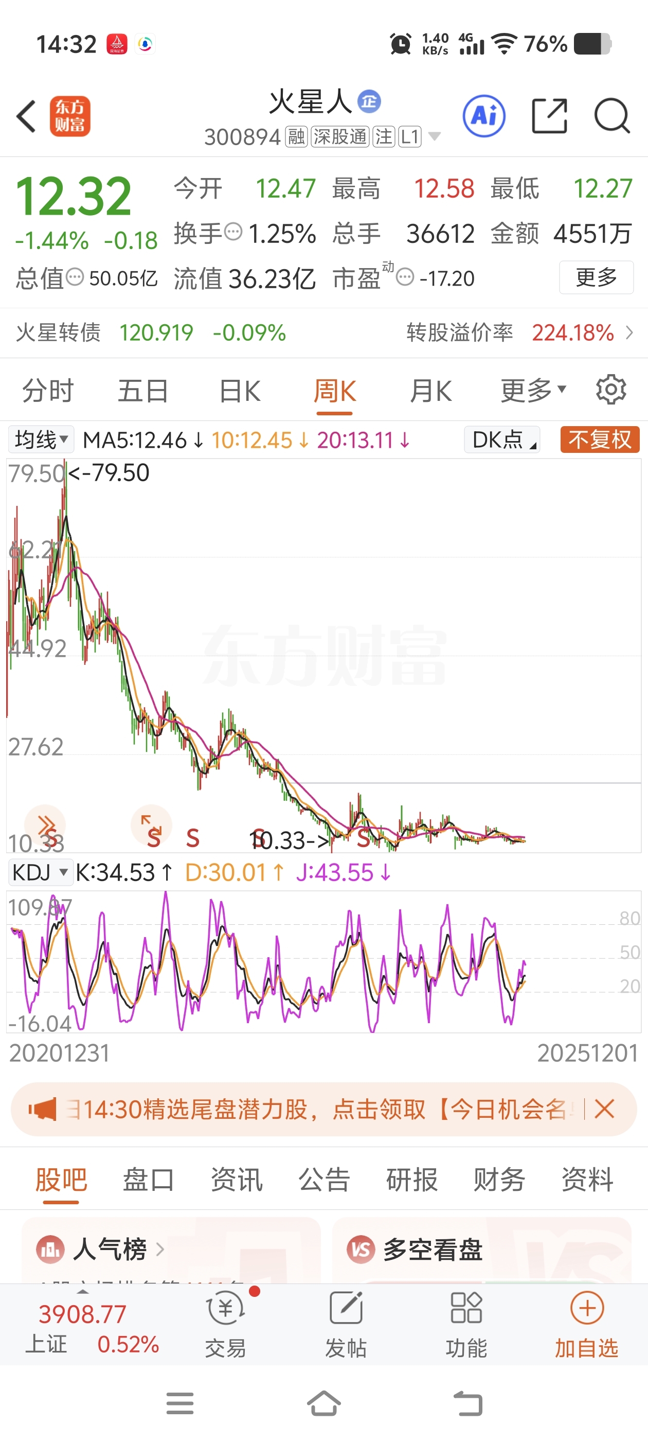 这次买了个好价钱,不买这种沙朱盘股了,准备买300894火星人