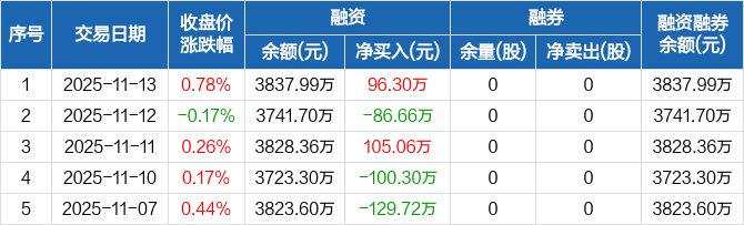 仁信新材:融资净买入96.3万元,融资余额3837.99万元(11-13)
