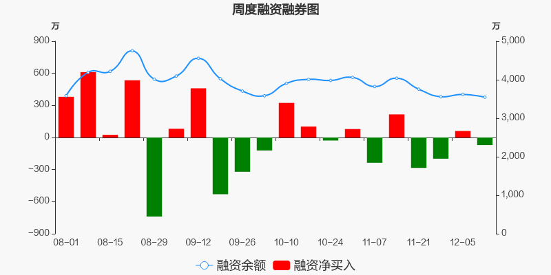 仁信新材本周(2025/12/08-2025/12/12)累计跌幅达4.84%,截至12月12日最新股价报收10.61元。从增量上来看,12月8日至12月11日融资买入交易规模515.09万元,融资偿还规模586.08万元,期内融资净偿还70.99万元。从存量上来看,截止12月14日,仁信新材融资融券余额3547万元,其中融资余额规模3547万元,融券余额规模0元。