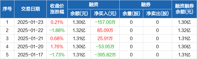 宏景科技:融资净偿还157万元,融资余额1.3亿元(01-23)