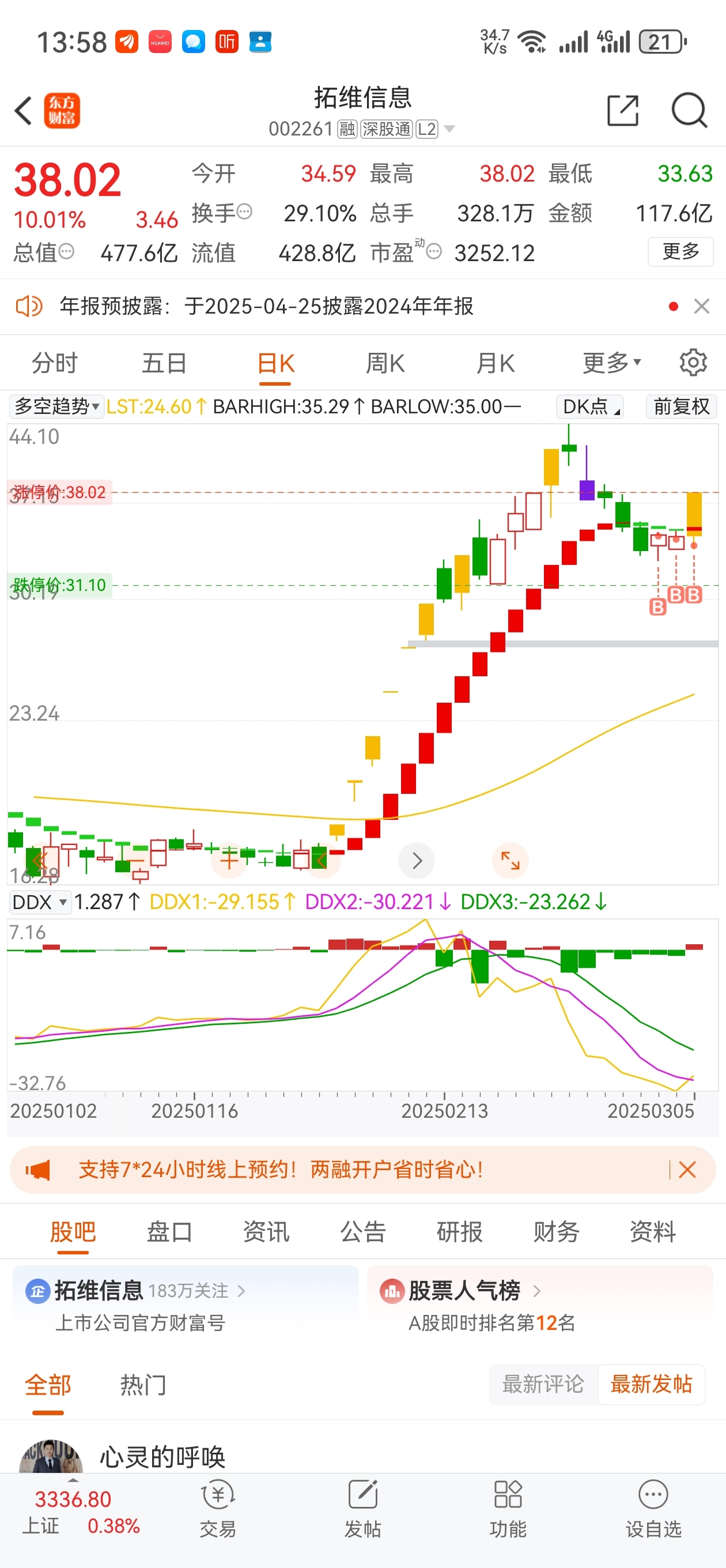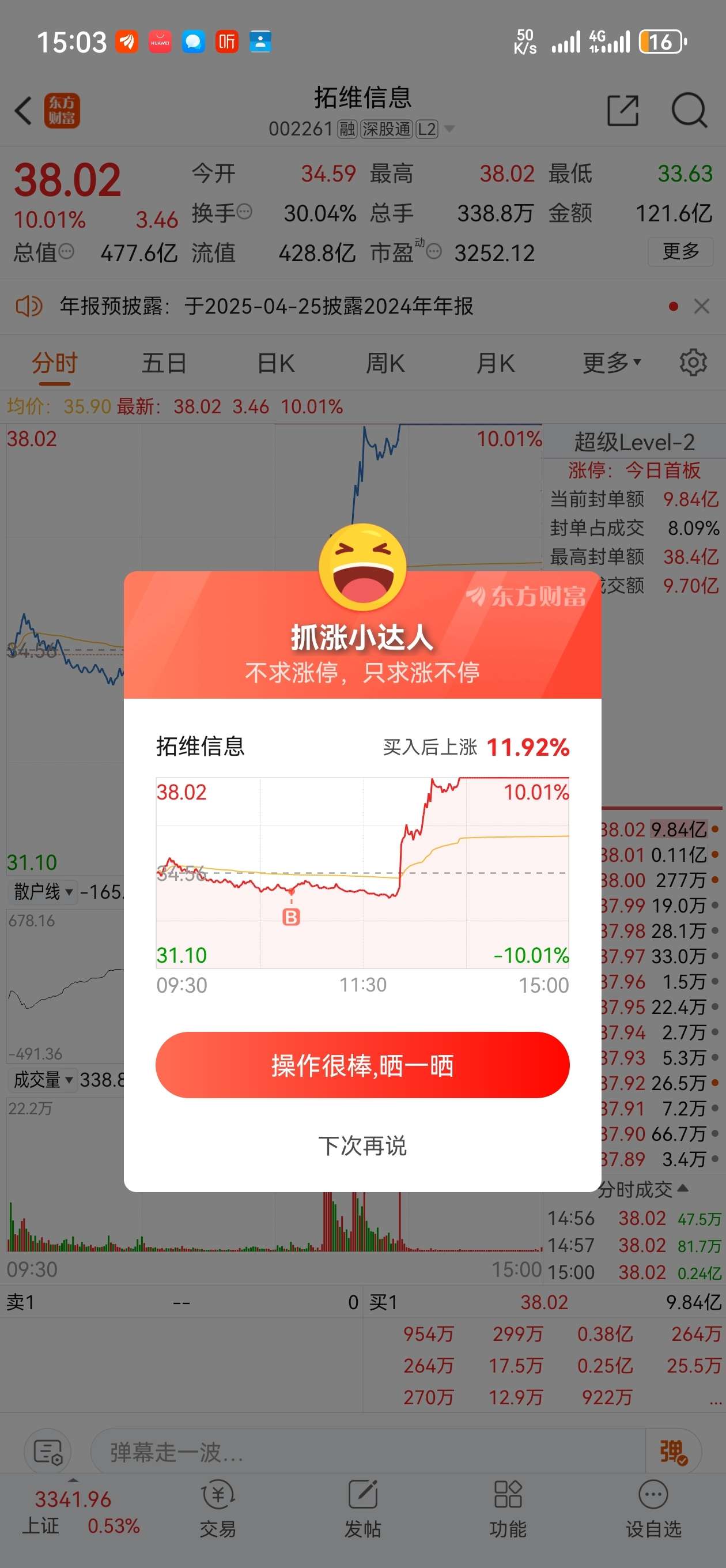 $宏景科技(SZ301396)$ 明日看法,今早高开我选择走一部分,因为这个想法在前一天就预测了,然后在中期我选择继续抄一部分,拉高就当做t,拉低也不会损失太多,最主要的随着大会的召开我依然看好龙头跟deepseek概念,所以继续抄了拓维,跟首都,当然也符合了预期。至于宏景,明天还是一样看分歧,可能会低开拉高,也有可能10cm以上,至于涨停,我不太看好,当然看情况,如果很强势我依然选择继续抄