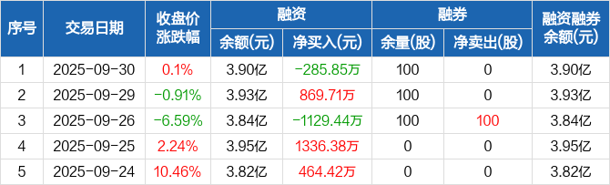 宏景科技:融资净偿还285.85万元,融资余额3.9亿元(09-30)