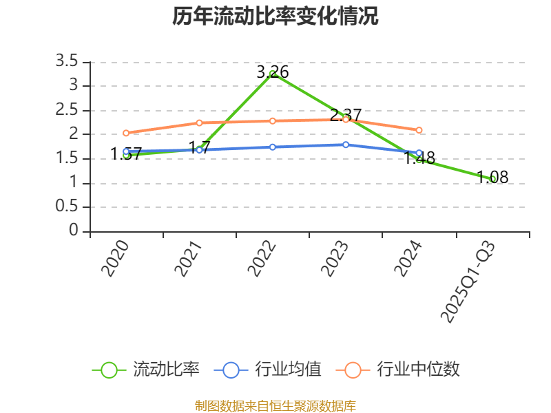 2025年前三季度,公司流动比率为1.08,速动比率为0.79。