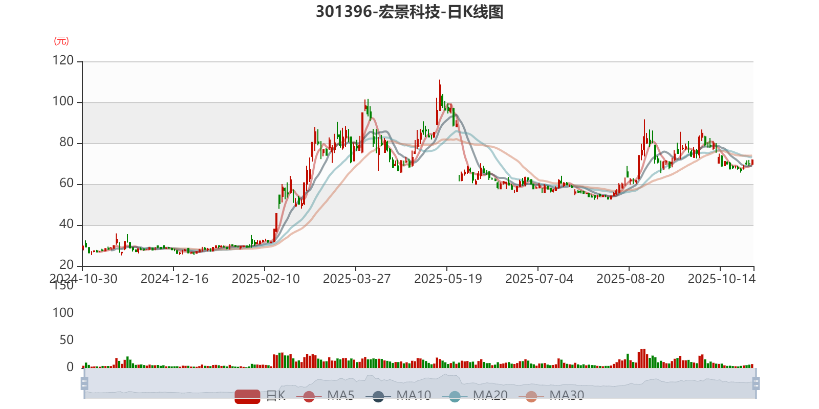 以10月29日收盘价计算,宏景科技目前市盈率(TTM)约为175.79倍,市净率(LF)约8.54倍,市销率(TTM)约5.55倍。