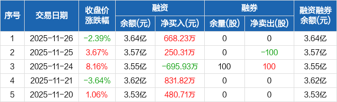 宏景科技:融资净买入668.23万元,融资余额3.64亿元(11-26)
