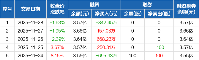 宏景科技:融资净偿还842.45万元,融资余额3.57亿元(11-28)