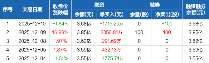 宏景科技:融资净偿还1716.29万元,融资余额3.68亿元(12-10)
