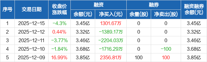宏景科技:融资净买入1301.67万元,融资余额3.45亿元(12-15)
