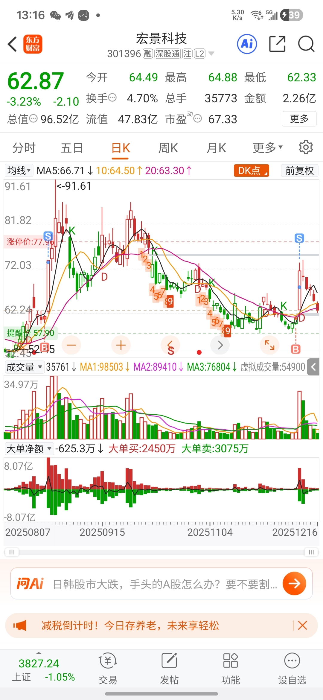 $宏景科技(SZ301396)$ 61左右进,稳赚,这股规律我都找到了,只要我进第二天必涨停