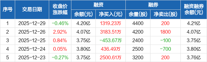 宏景科技:融资净买入1319.23万元,融资余额4.2亿元(12-29)