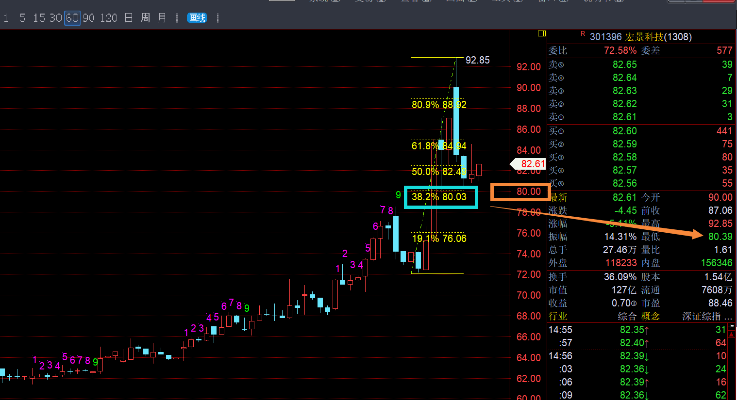 301396分时调整空间可能一步到位了即80.39