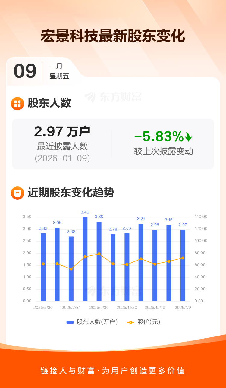 宏景科技:截至1月9日最新股东户数2.97万户,较上期减少5.83%