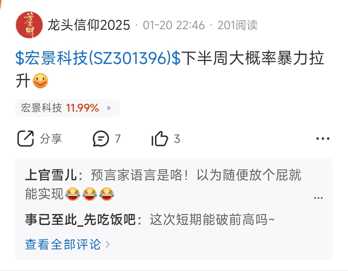 温馨提示: 1.根据《证券法》规定,禁止编造、传播虚假信息或者误导性信息,扰乱证券市场;2.用户在本社区发表的所有资料、言论等仅代表个人观点,与本网站立场无关,不对您构成任何投资建议。用户应基于自己的独立判断,自行决定证券投资并承担相应风险。《东方财富社区管理规定》