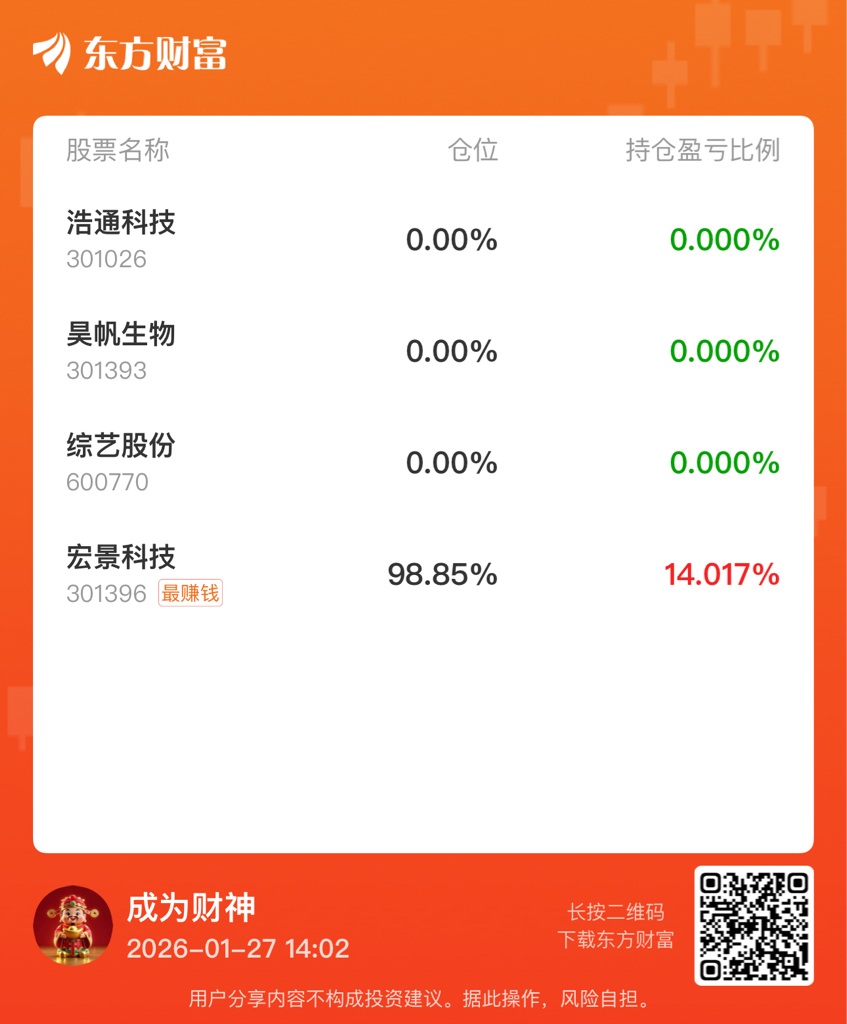 $宏景科技(SZ301396)$ 主力明天再给个涨停吧