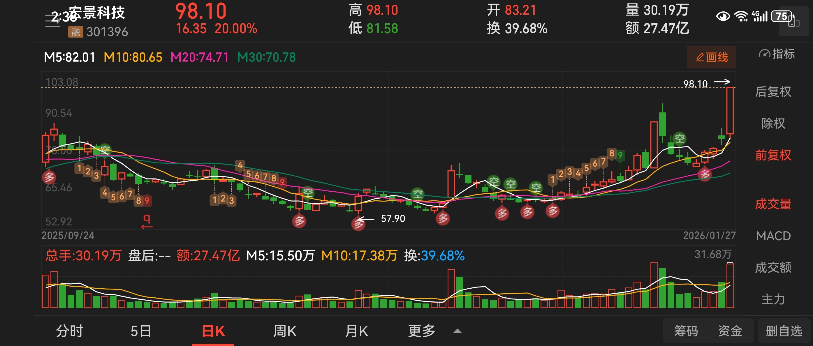 $宏景科技(SZ301396)$ 1.13号的宏景又上板了,两根20CM