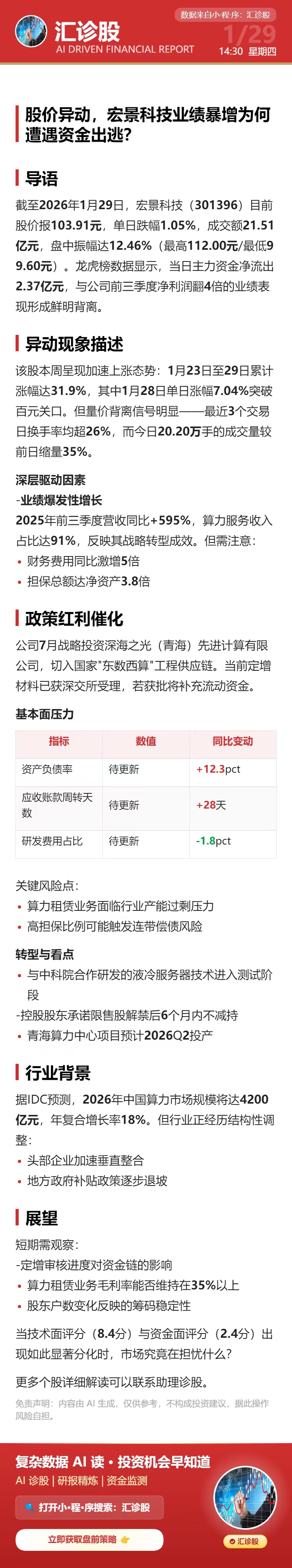 股价异动,宏景科技业绩暴增为何遭遇资金出逃?