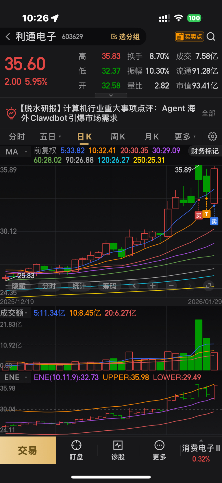 #炒股日记# 利通电子27日搞半仓时机不对,还不如今天上去又有团队批量进算力硬件买更好时机造趋势!