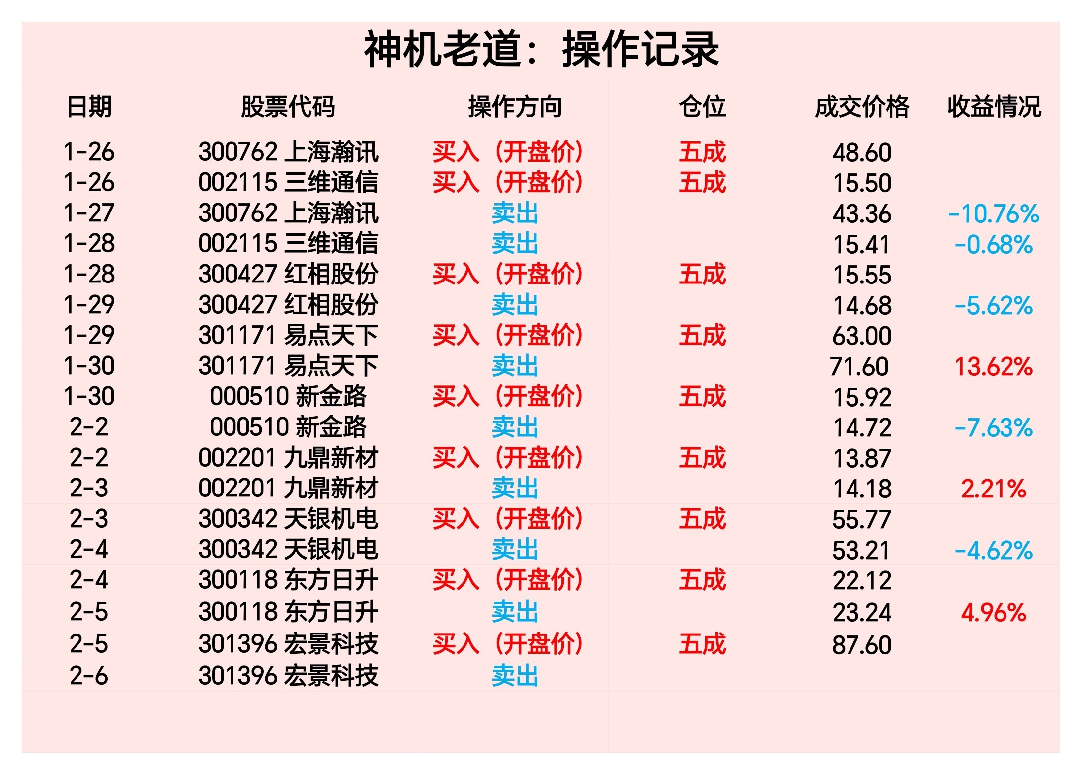 2月6作计划:开盘价买入:近期策略调整,春节后从新开始更新~收盘前卖出:30