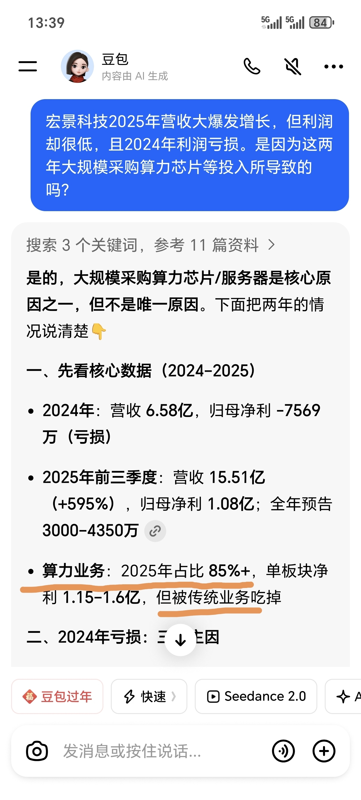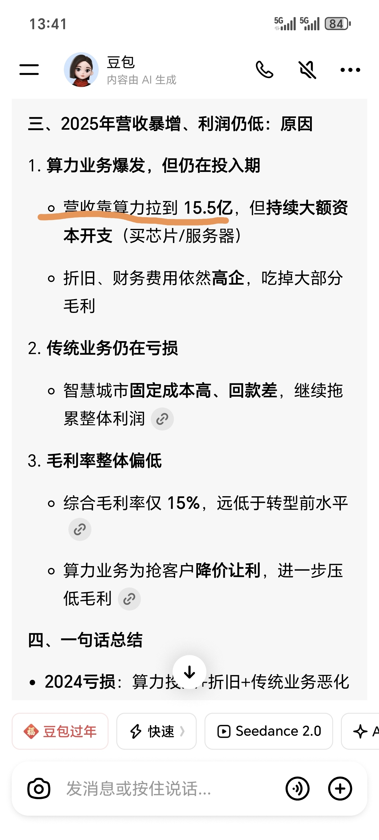 25年处于转型阵痛期。目前算力业务营收占比为85%,且利润率远高于传统业务。手上