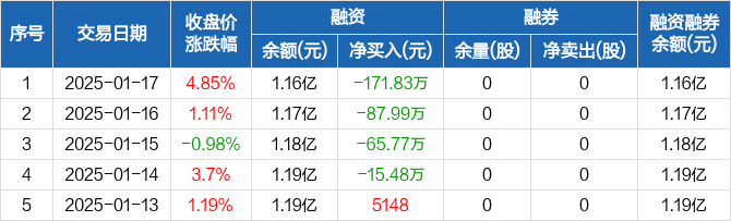 溯联股份:连续4日融资净偿还累计341.07万元(01-17)