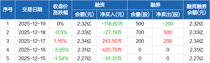 溯联股份:融资净偿还118.82万元,融资余额2.32亿元(12-19)