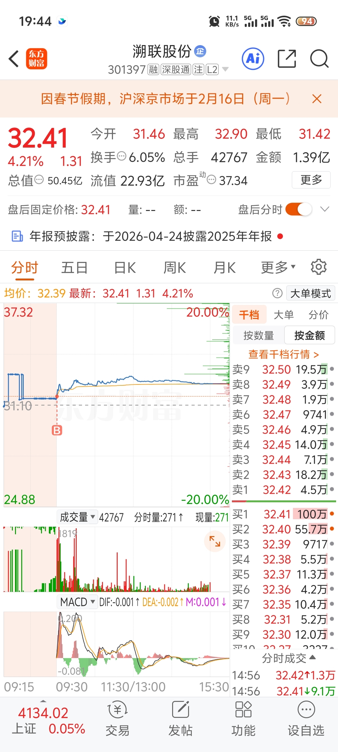 $溯联股份(SZ301397)$ 明天起飞