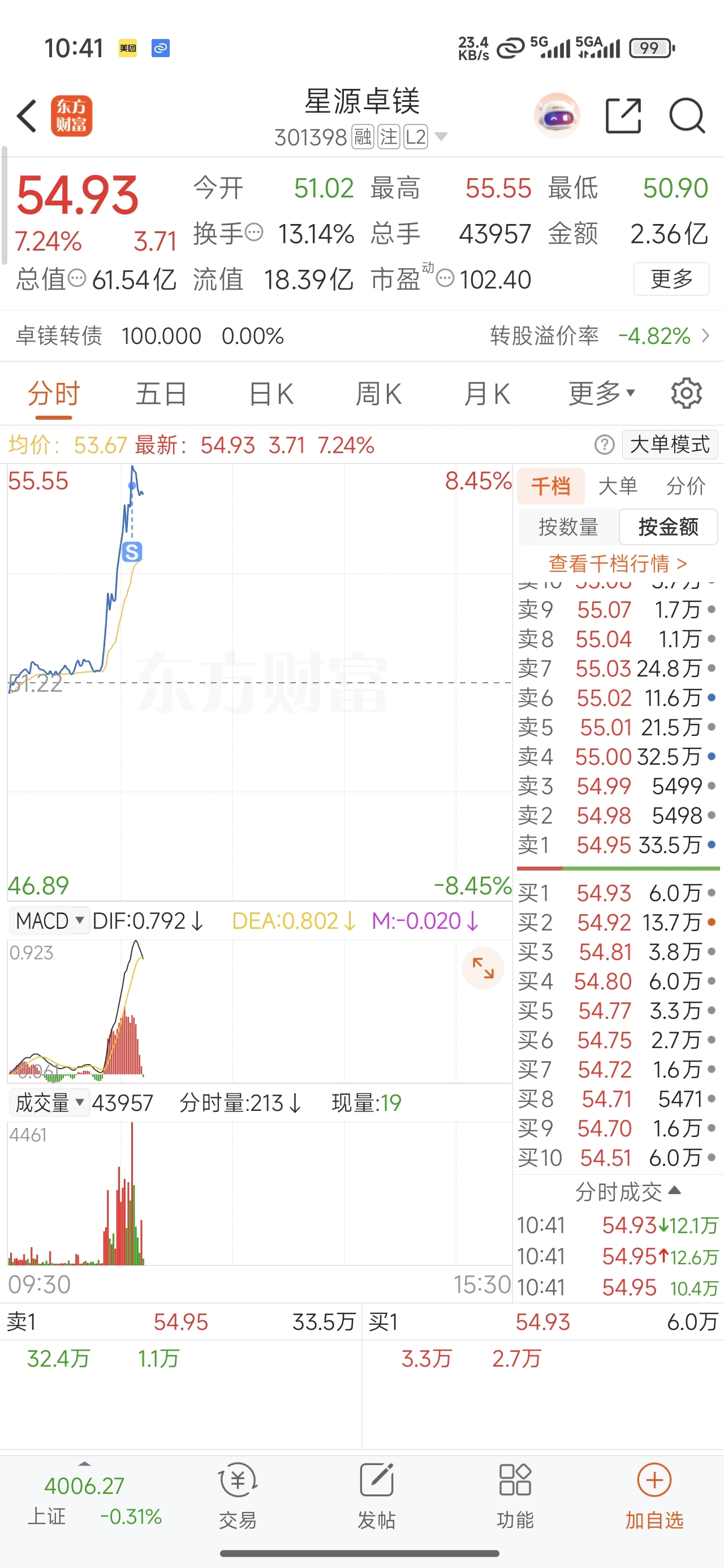 $星源卓镁(SZ301398)$ 设置的条件单,这也太猛了,瞬间就成交,这债配的值。。。