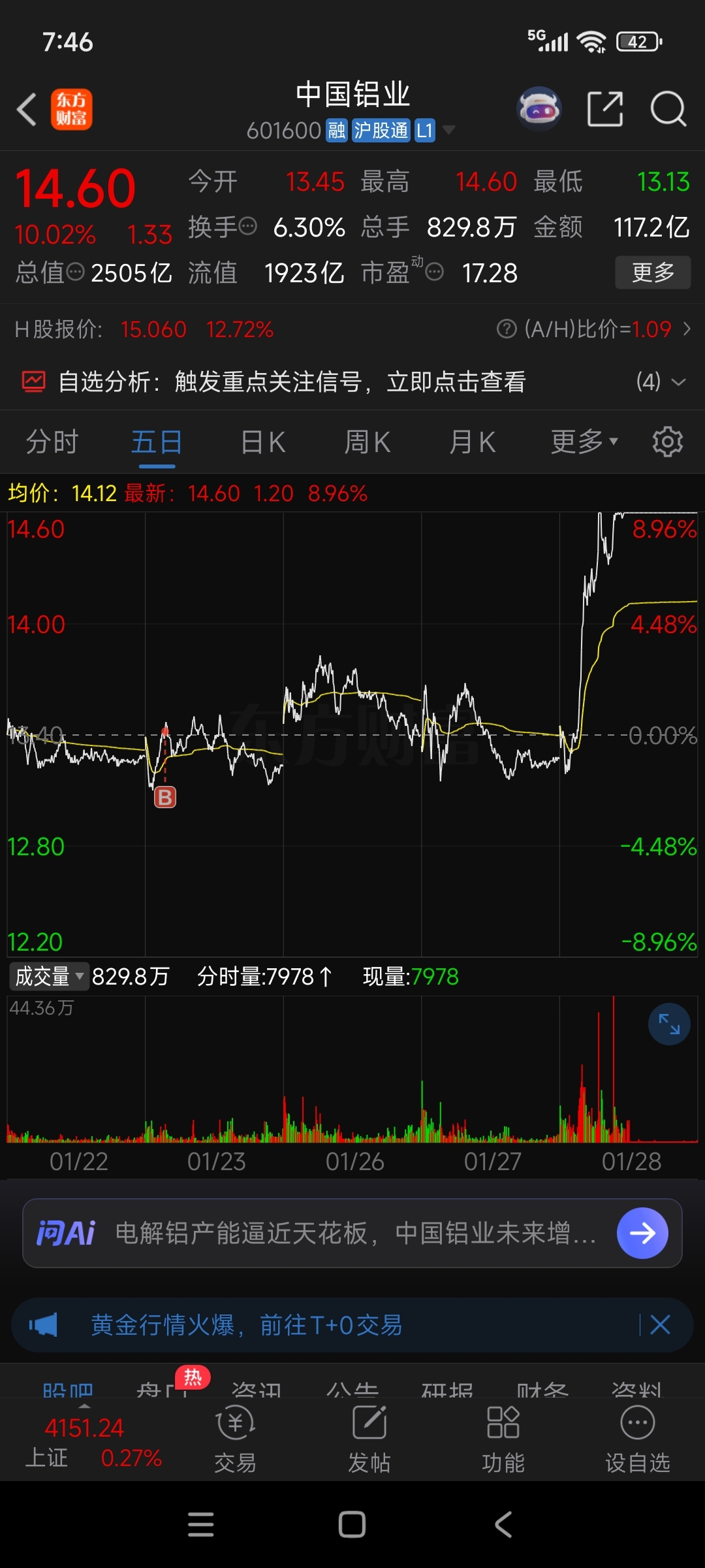 搞了中铝和你感觉你弹性更大。。。。。。看来是我赌性更大