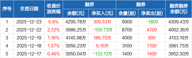 英特科技:融资净买入309.53万元,融资余额4295.78万元(12-23)