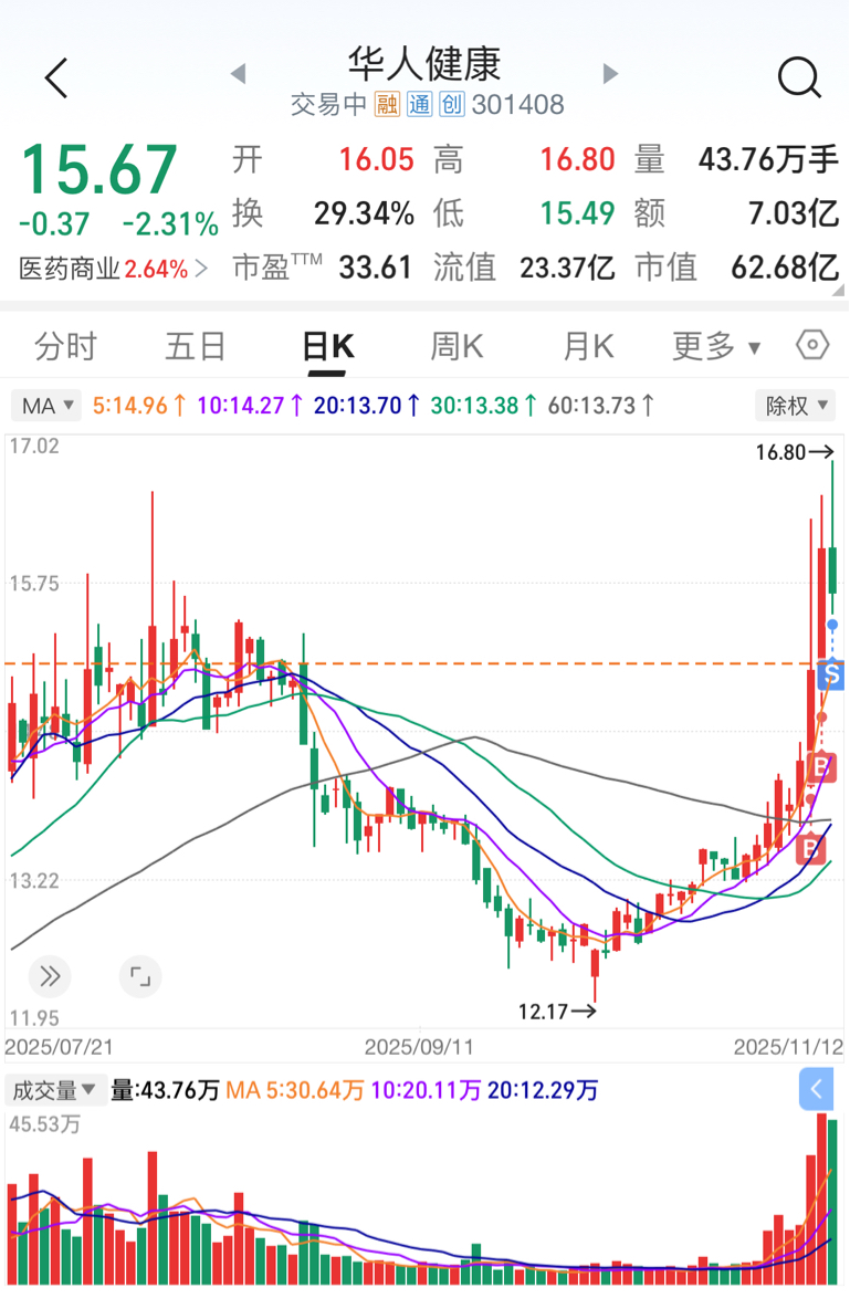 华人今天表现不及预期,止盈。盘中去了开能健康表现不错。