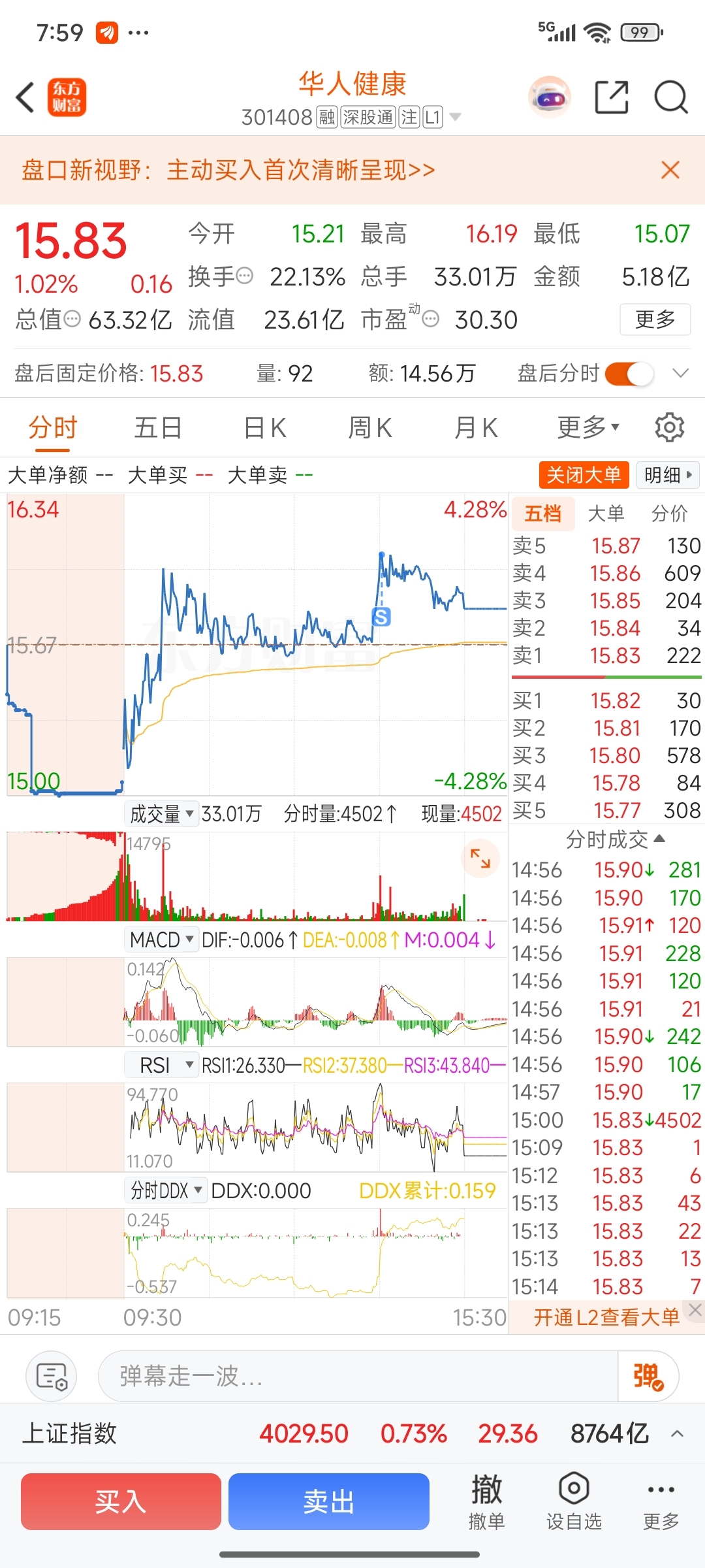 $华人健康(SZ301408)$ 昨天清仓了,上涨无力
