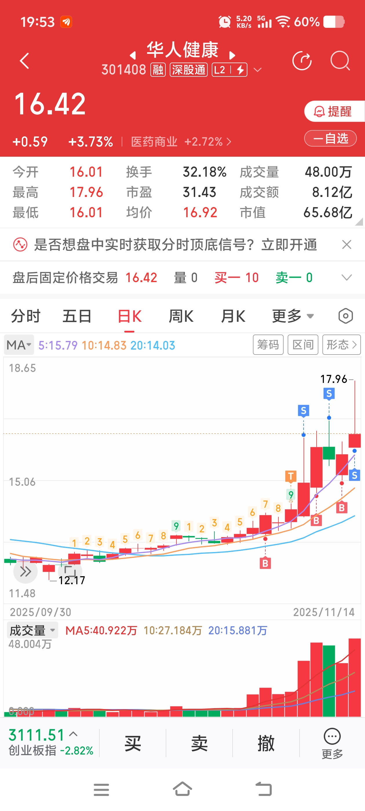 $华人健康(SZ301408)$ 三进三出,搞了三十个点,下周低开准备继续进