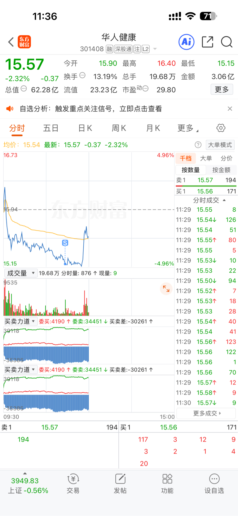 $华人健康(SZ301408)$ 无语了,看到同泰要跌停了,最低位点跑了