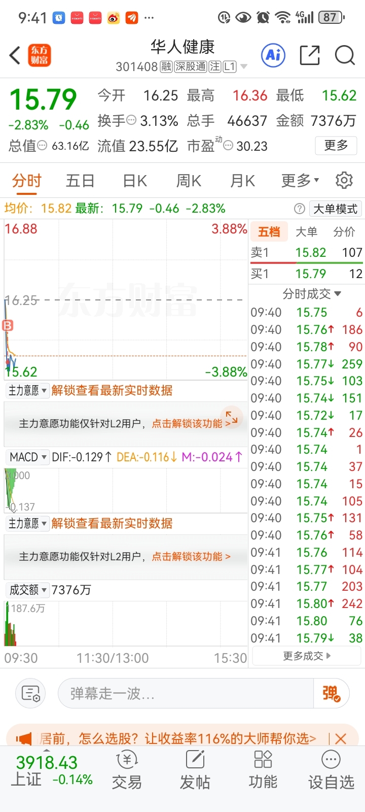 $华人健康(SZ301408)$ 兄弟们我15.66又回马枪干了一票
