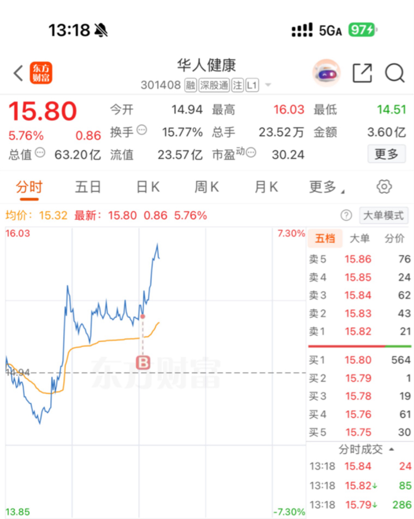 $华人健康(SZ301408)$ 15.40介入#炒股日记# #复盘记录# #强势机会# #股市怎么看#