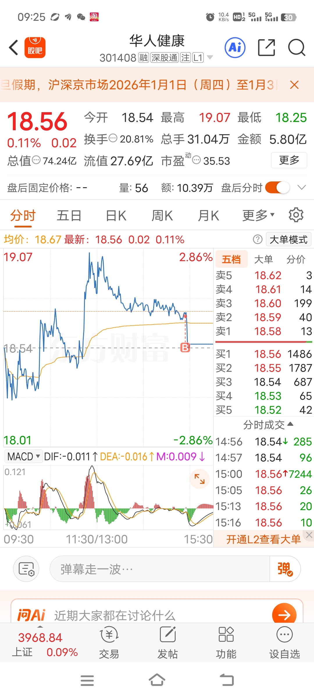 $华人健康(SZ301408)$ 华人被我买崩了,就看上我两百股