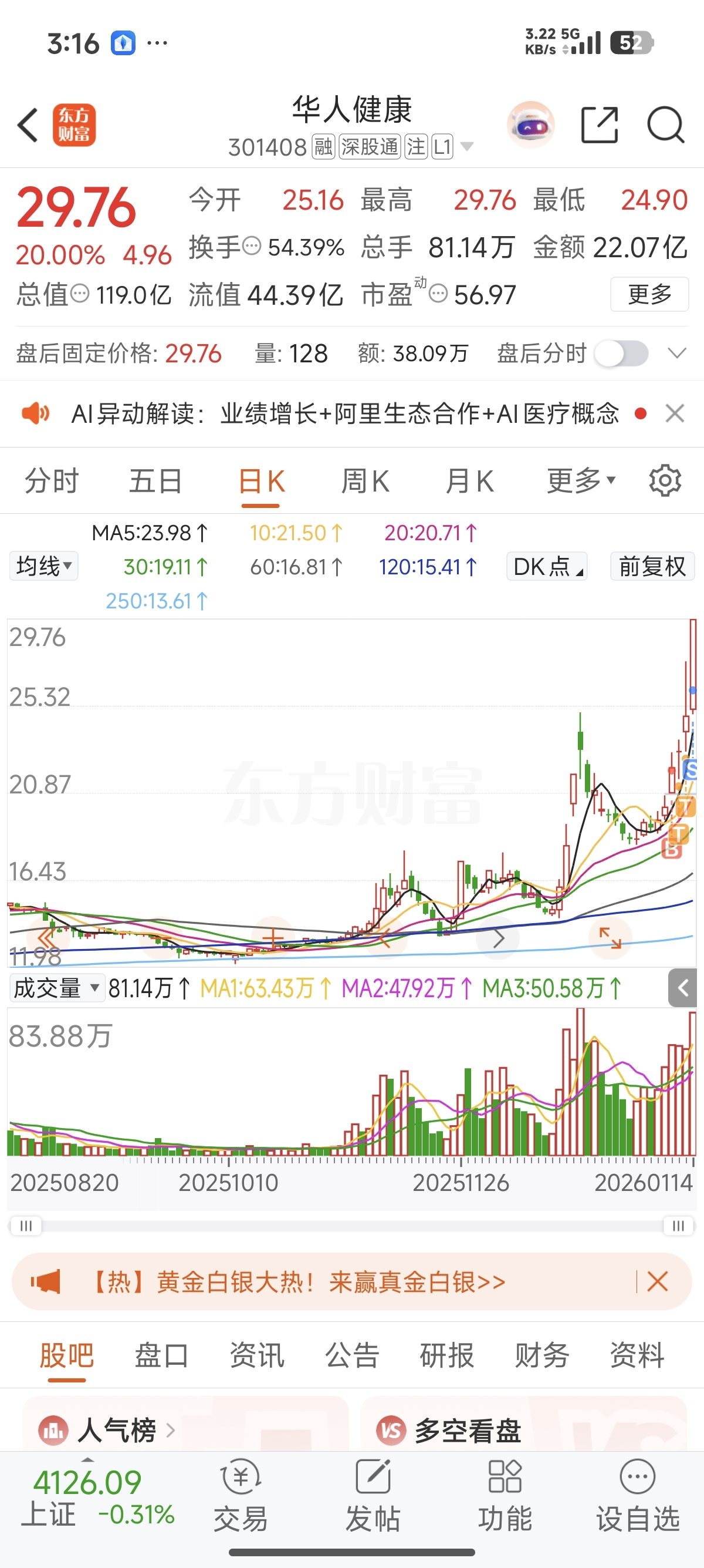 $华人健康(SZ301408)$ 无敌是多么寂寞
