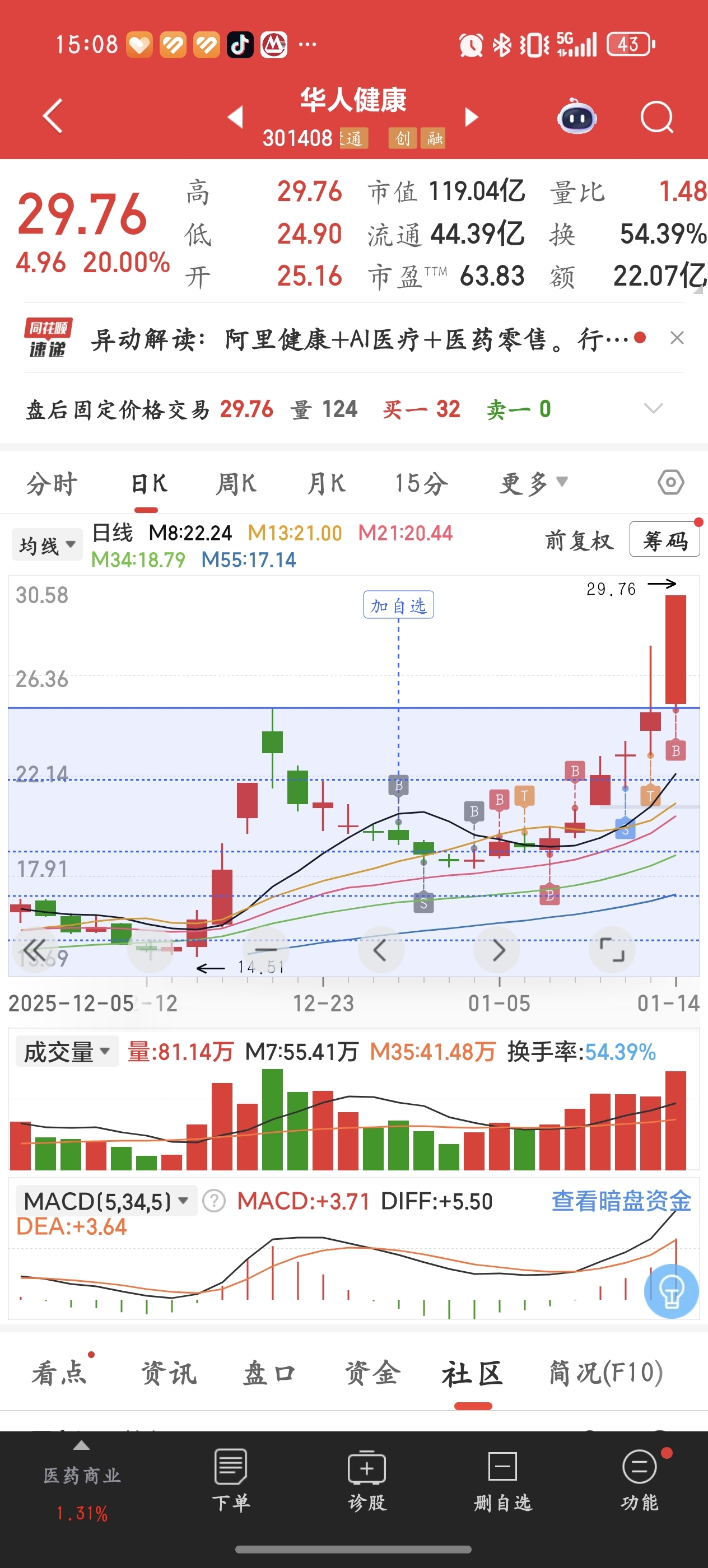 $华人健康(SZ301408)$