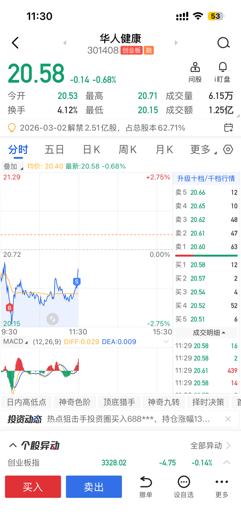 $华人健康(SZ301408)$ 套了一周多,今天心思补仓做个t,结果又t飞了?