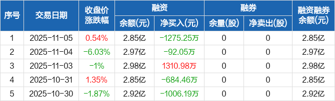 安培龙:融资净偿还1275.25万元,融资余额2.85亿元(11-05)