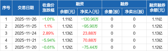 协昌科技:融资净偿还130.96万元,融资余额1.11亿元(11-26)