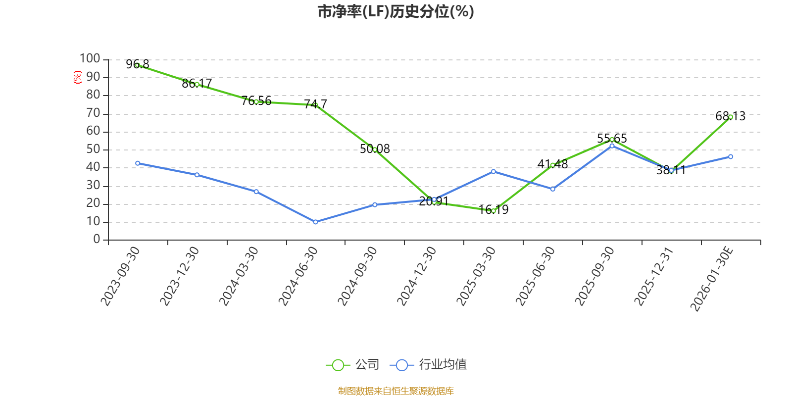 市盈率、市净率为负时,不显示当期分位数,会导致折线图中断。