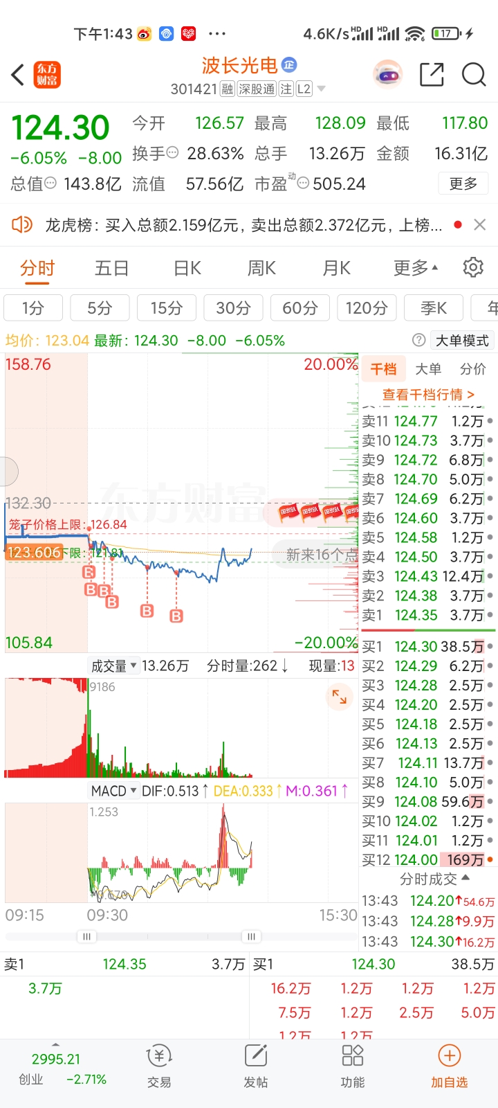 $波长光电(SZ301421)$ 你们是在等你20打板么?