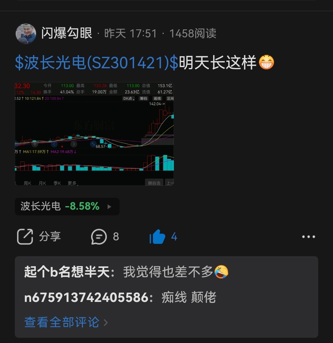 郑重声明:用户在财富号/股吧/博客等社区发表的所有信息(包括但不限于文字、视频、音频、数据及图表)仅代表个人观点,与本网站立场无关,不对您构成任何投资建议,据此操作风险自担。请勿相信代客理财、免费荐股和炒股培训等宣传内容,远离非法证券活动。请勿添加发言用户的手机号码、公众号、微博、微信及QQ等信息,谨防上当受骗!