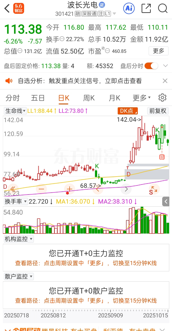 $波长光电(SZ301421)$ 买进来就跌,站岗了!唉……