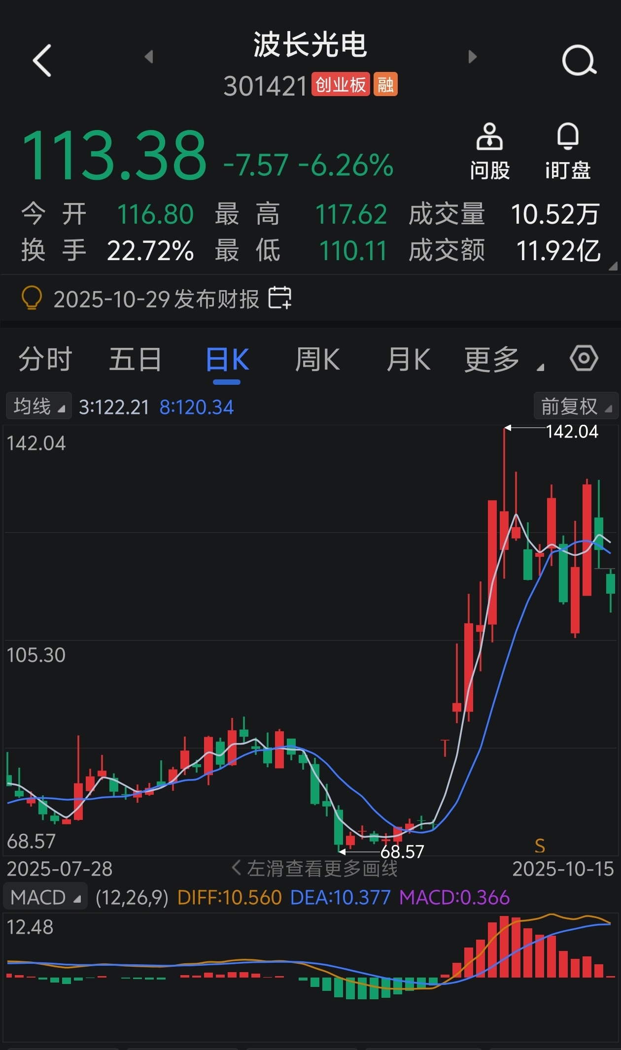 波长是我一直关注的票,今天几次都想重新进场,又忍住了。原因是:macd红柱几乎没有了,这是近一个月以来少有的情况,当然也包括今天下跌的极其缩量。