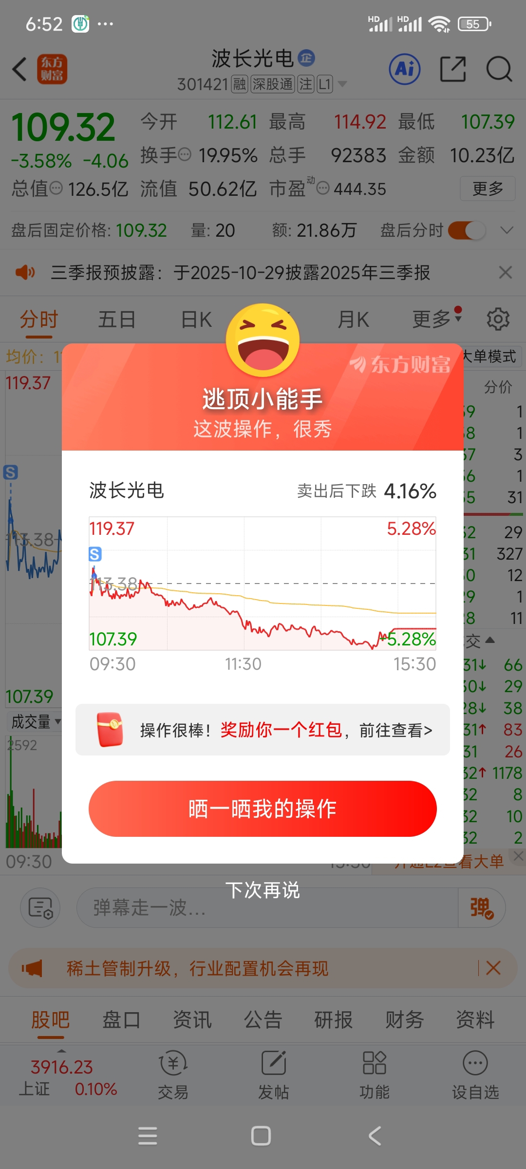 $波长光电(SZ301421)$ 今天割了,明天还回来了吗
