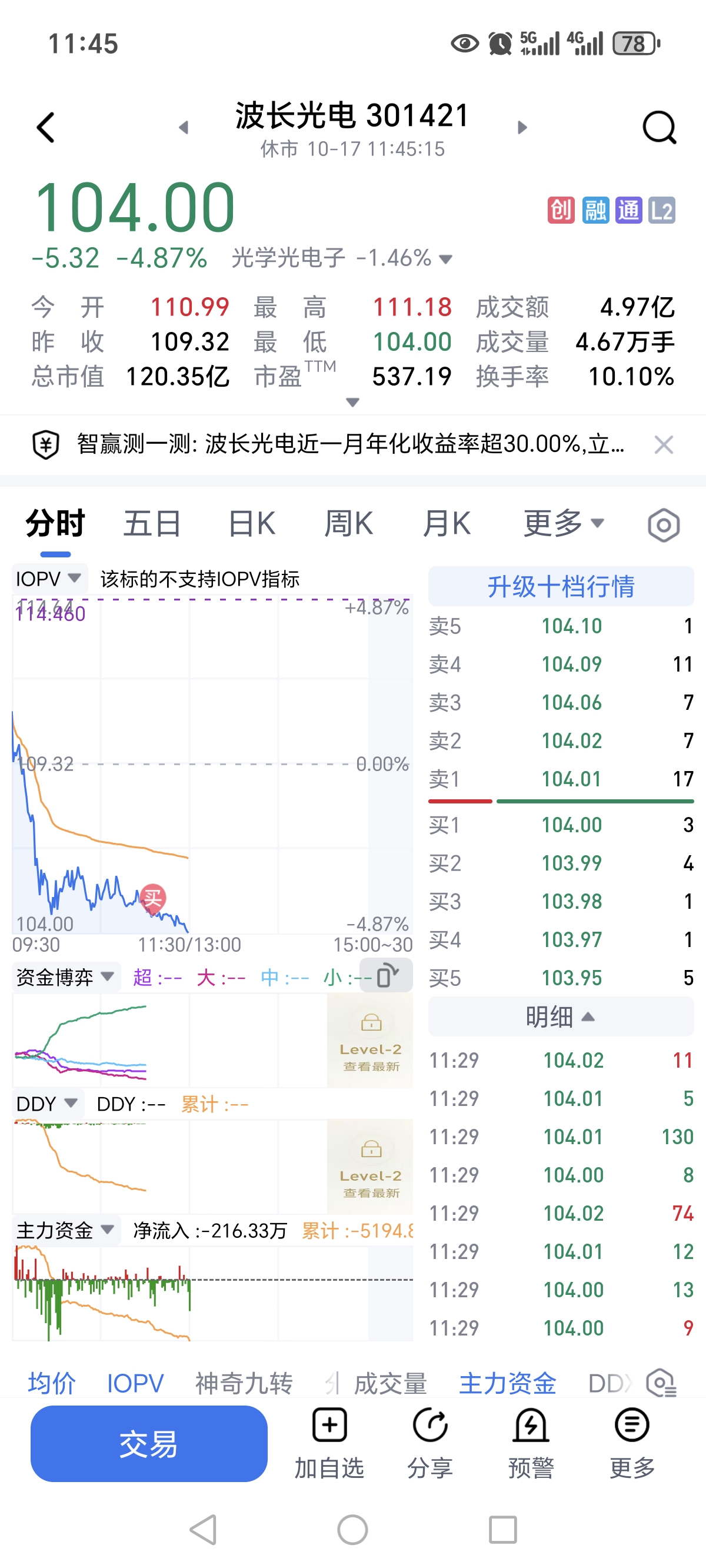 卖了江波龙,来补仓了,从124补到114.46,大亏9个点,亏麻了
